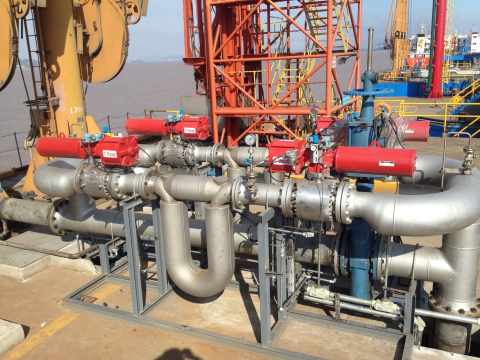 计量撬广泛应用于大型石化炼油企业液体码头定量装船领域。采用贸易级质量流量计,其流通能力大,集成压力补偿,阀门控制,通讯传送等各种功能,解决了大流量流量计、大口径阀现场安装带来的设计、施工、调试问题。用户需提出流量要求及精度要求,其设计过程三维模拟管线压损、管线配接,制造工艺等,为用户提出从设计、制造、调试全集成服务。